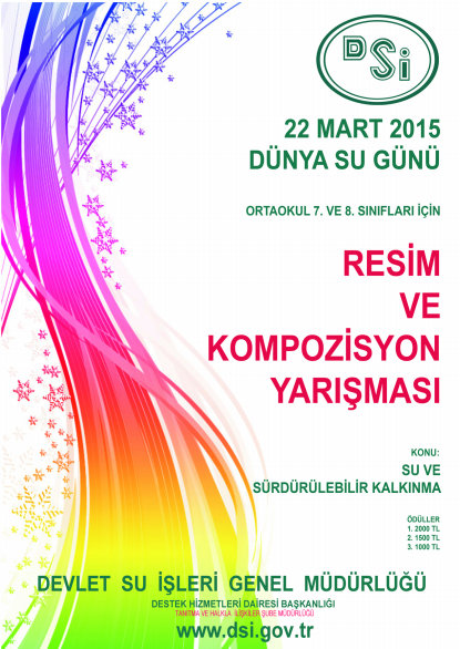 Devlet Su İşleri Genel Müdürlüğü tarafından düzenlenen resim yarışmaları kapsamında, 7.ve 8.sınıf öğrencileri Dünya Su Günü hakkında resimler yapacak. Tatlı su kaynaklarının korunması ve su tüketiminin azaltılması gibi konulara dikkat çekmek amacıyla kutlanan Dünya Su Günüiçin düzenlenen çocuk resim yarışmasısonucunda dereceye giren öğrencilere plaket ve para ödülü verilecek.